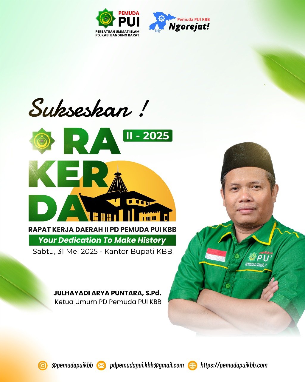 pemudapuikbb.com Ngamprah-KBB. Pengurus Daerah Pemuda PUI KBB merencanakan akan menggelar Rapat Kerja Daerah II (RAKERDA II) pada akhir Mei 2025 ini. Rakerda kali ini mengangkat tema Your Dedication to Make History. Kantor bupati Bandung Barat diwacanakan menjadi lokasi kegiatan ini. Pemilihan tema tersebut untuk memompa semangat pengurus dan kader Pemuda PUI dalam mengabdi dan menjalankan roda organisasi. Bahwa keterlibatan dan pengabdian setiap pengurus adalah bagian dari mengukir sejarah dirinya.