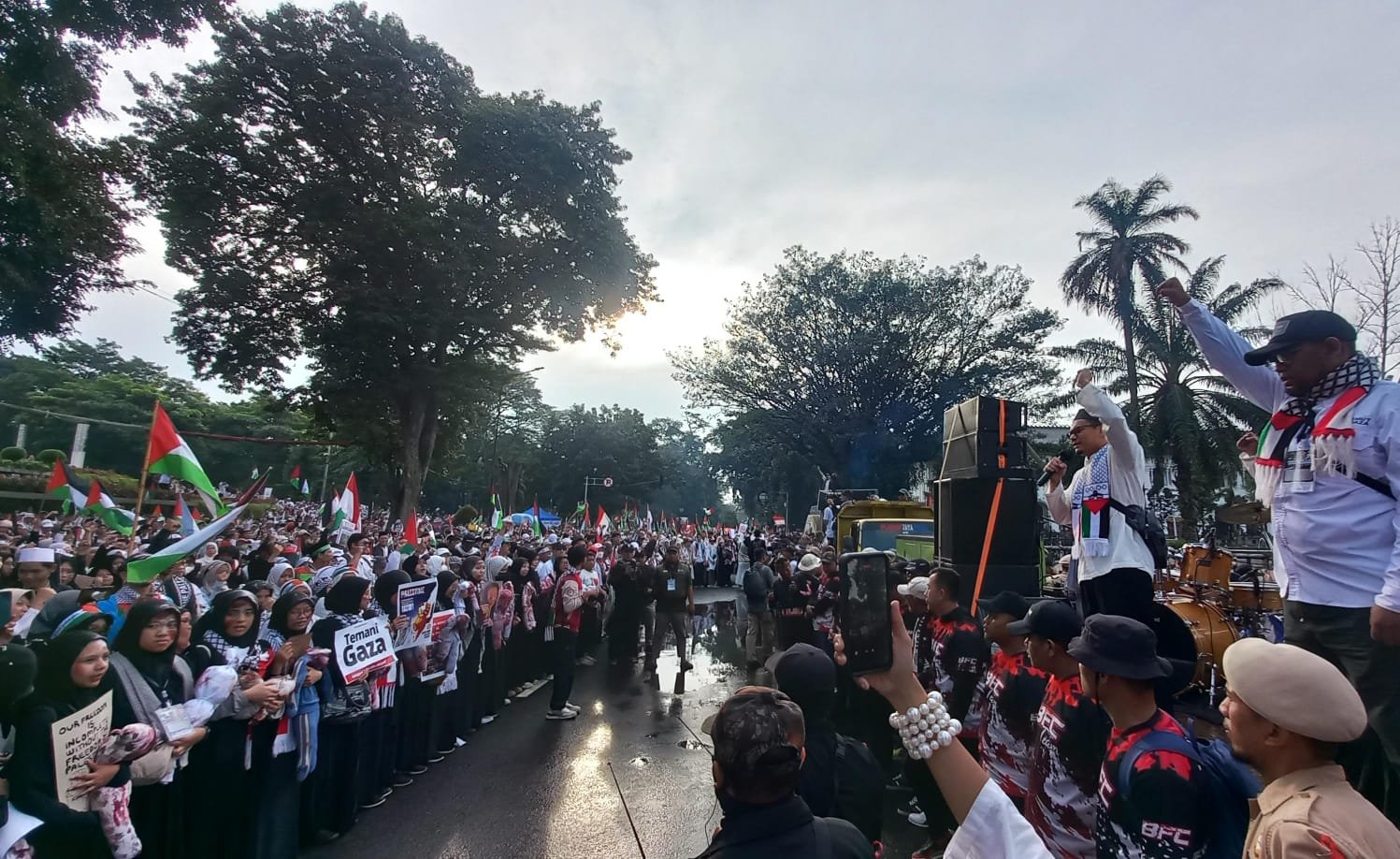 Dengan penuh keprihatinan dan kepedulian mendalam terhadap tragedi kemanusiaan yang terus berlangsung di Palestina, kami—masyarakat Jawa Barat dari berbagai elemen dan lintas lembaga dan komunitas terutama, tokoh agama, tokoh masyarakat, ormas Islam, kepemudaan, lembaga zakat dan kemanusiaan serta berbagai komunitas di Jawa Barat—menyatukan suara dalam aksi solidaritas ini.