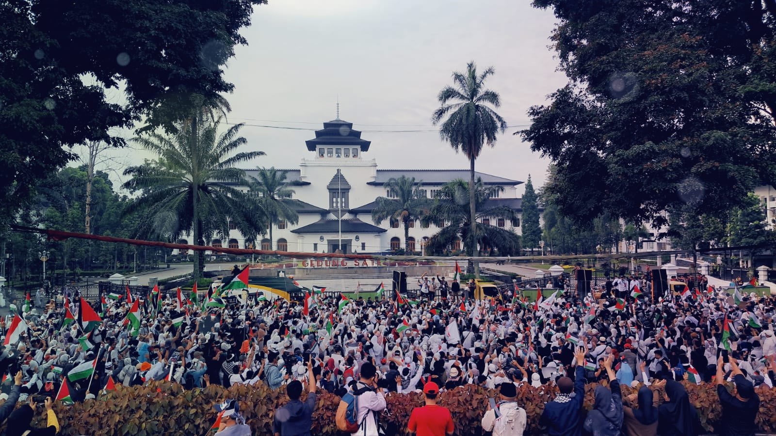 pemudapuikbb.com-Kota Bandung. Puluhan ribu masyarakat Jawa Barat kembali turun ke jalan menyuarakan kemerdekaan bangsa Palestina. Massa yang tergabung dalam Forum Jawa Barat Peduli Palestina menggelar aksi pada hari Ahad (20/04/2025) di kota Bandung Jawa Barat. Mereka berasal dari berbagai kalangan seperti Ormas Islam, Pondok Pesantren, sekolah, DKM, majelis taklim, komunitas dan elemen lainnya. Juga dari berbagai level umur, tua dan lansia, dewasa, muda, remaja dan anak-anak.